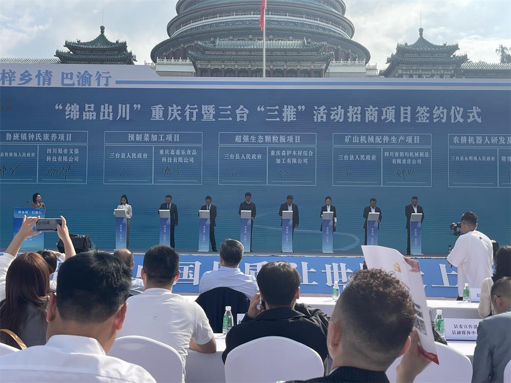 吴明禹在致辞中说,绵阳是党中央、国务院批准建设的中国唯一科技城,也是四川第二大经济体。国家赋予绵阳加快建设中国特色社会主义科技创新先行区的光荣使命,四川省委、省政府赋予绵阳加快建成省域经济副中心的时代重任。“国之大者”与“省之大计”在这里历史性交汇,使绵阳备受瞩目和期待。吴明禹说,本次活动的参展企业主要来自三台。三台位于成都、重庆、西安“西三角”腹心地带,历史厚重、人文荟萃,物产丰饶、产业兴旺。近年来,三台坚定不移走基于农业优势和人口红利的工业强县之路,以纺织鞋服、健康食品、新能源材料为主导的现代工业产业体系成型成势,正加快从农业大县、人口大县向产业大县、发展强县跃升。热忱欢迎大家到绵阳和三台走一走、看一看,真诚希望通过这次活动,进一步加强与重庆各界的交流合作,让更多朋友了解绵阳和三台,共创互利共赢的美好未来。
