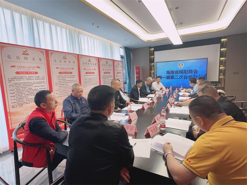 2024年3月20日下午,海南省绵阳商会第一届第二次会长办公会在商会会议室召开。商会会长王平兴,监事长袁伟茗,执行会长蒋怀全、钱均、赵忠喜、赵义高、黄大春,常务副会长蒋贵、陈勇、何勇均,副会长任益,秘书长白贵州,副会长单位中九建工集团有限公司代表李远霖,中国经济报道海南运营中心主任李勇及秘书处陈天兴、陈小丽等参加了会议。