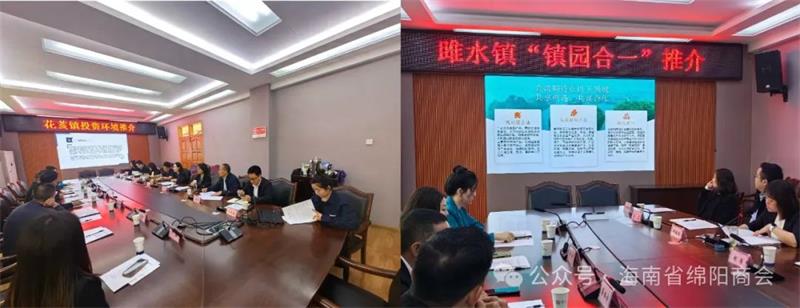 2024年4月1日,海南省绵阳商会王平兴会长一行赴绵阳市安州区考察,安州区政府有关领导与商会考察团人员在区政府召开座谈会。区政协副主席、工商联主席张玉主持会议,区委常委、统战部部长、总工会主席蔡晓玲出席会议,绵阿园区、花荄镇、雎水镇主要负责人参加并作招商引资推介,安州高新区、区工商联、区经合局、区在外人士联络服务中心相关负责人参加。